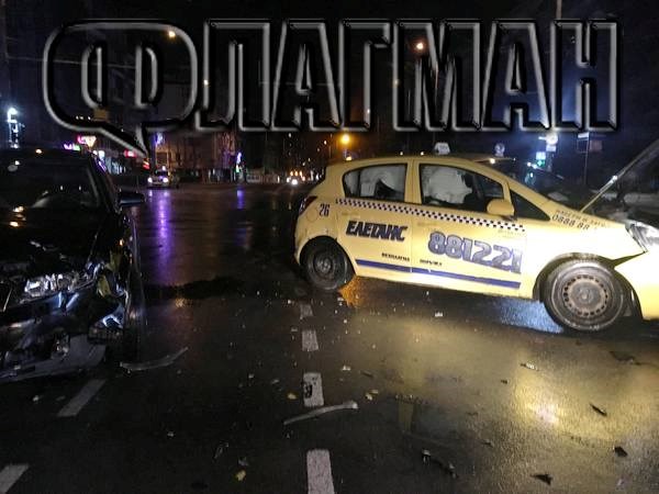 В момента на удара в жълтата кола имало клиенти. Като по чудо пътниците се отървали невредими след катастрофата. Не са пострадали сериозно и шофьорите на двата автомобила.