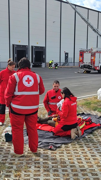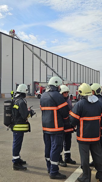 Пожаро-тактическо учение приключи успешно днес в складовата база на "ЛПМ Експрес" ЕООД в Русе. Тренировката се проведе по реалистичен сценарий, симулиращ възникване на пожар по време на товаро-разтоварна дейност със силно задимяване, пострадали и бързо разпространение на огъня.