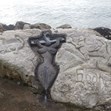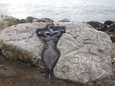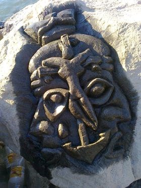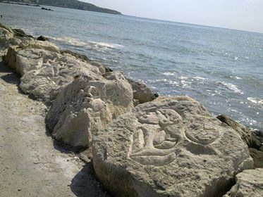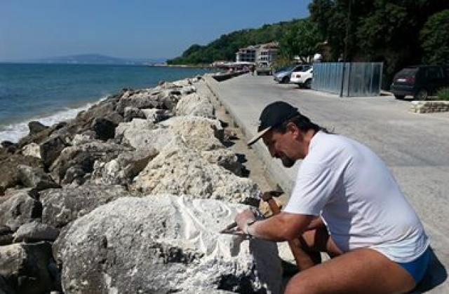 Почти цялото крайбрежие към Албена е застлано с огромни камъни, които се превръщат в творби под длетото на артиста. Той прекарва часове край циментовия панорамен път, който опасва брега, пише Дарик.