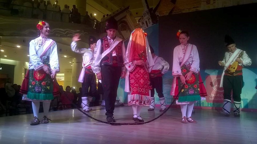 Русенци представяха танцова адаптация на българска фолклорна сватба на сцената на огромен прохладен търговски център, скрити от 50-градусовата жега навън.
