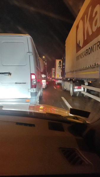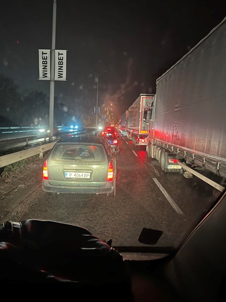 Причината е аварирал ТИР. "Имаше задръстване, а шофьорът на тира излизаше от „Спиди“ и реши да мине напряко, ама в калта", обясни очевидец на инцидента.