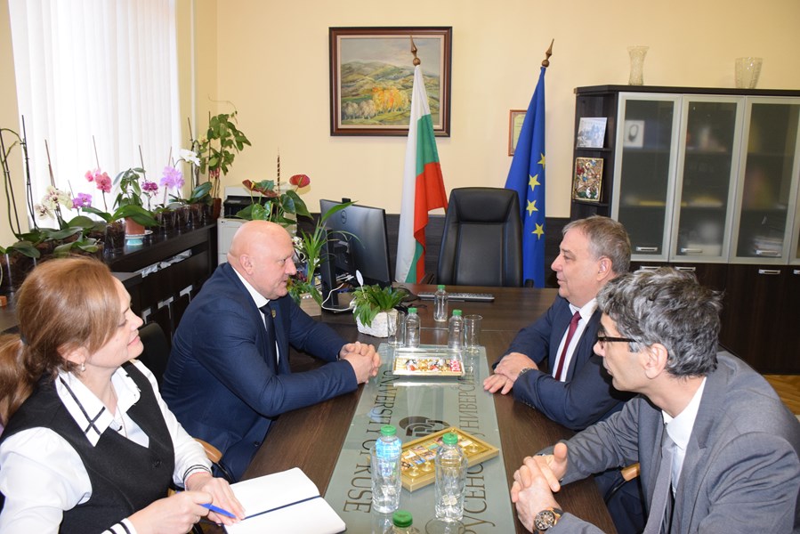 Председателят на район Тараклия Лазар Дерменжи и началникът на службата за външните връзки към Районен съвет Тараклия Людмила Бишир проведоха работни разговори с академичното ръководство на русенската Алма матер. Домакини на срещата бяха заместник-ректорът по учебната работа професор доктор Теодор Илиев и заместник-ректорът по качество на образованието, акредитация и развитие на филиалите и поделенията професор доктор Генчо Попов.