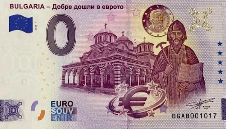 България вече официално е част от еврозоната от 1 януари 2026 година, а с това настъпи и златната ера за търговците на сувенири. Най-хитовият продукт в момента е така наречената сувенирна банкнота с номинал „0 евро“, която изобразява катедралата „Свети Александър Невски“ и Рилския манастир. Въпреки че продуктът няма никаква реална платежна стойност, той се превърна в поредния обект на спекула по онлайн платформите за обяви.
