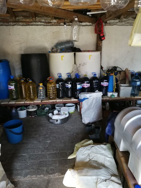 При последвалата митническа проверка, митническите служители откриват складирана в различни помещения в имота в ПВЦ-туби и бидони общо 1010 литра алкохолна течност, с характеристики по цвят и мирис на ракия. Измереното на място с денситометър алкохолно съдържание на течността в различните съдове е от 48 до 57 об.%.