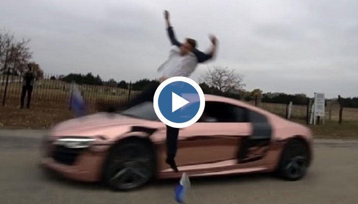 Бейли Пейн постоянно тества възможностите си. Този път той реши да застане лице в лице с огромната мощ на Audi R8. За малко возилото да го удари.