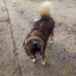 Кучето е порода смес от кангал и хъски, кафяво, със сини очи, на 3 години, с кожена широка каишка.