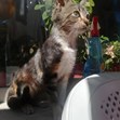 Тя е прясно изхвърлена. Всички квартални котки я бият.