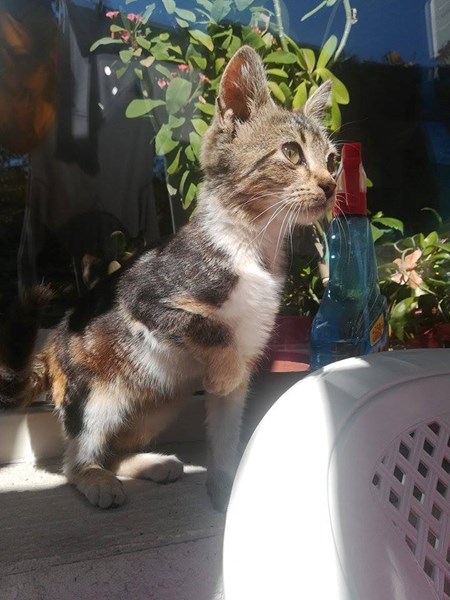 Изключително гальовно, трицветно, женско коте на около 3 месеца търси своето семейство.
