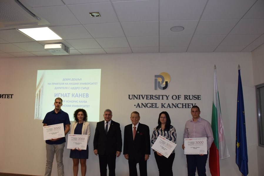 На тържествен академичен съвет преди промоцията, г-н Игнат Канев връчи от името на Благотворителната фондация „Игнат Канев“ четири стипендии на: Ленимир Здравков, Марин Бочев, Боряна Пенчева и Живка Андреева – студенти на висшето училище с изключителни постижения в обучението, иновативната и творческа дейност. А председателят на Студентския съвет благодари за подкрепата, която дарителят оказва на висшето ни училище и неговите студенти. Той връчи на г-н Канев и приза Будител на годината за 2017, присъден му единодушно от студентската общност. Почетният доктор на висшето училище получи дарителско свидетелство от ректора за подкрепата му в развитието на изявените студенти. В обръщението си към абсолвентите г-н Канев пожела да помнят откъде са тръгнали и да работят за просперитета на Русе.