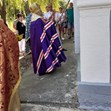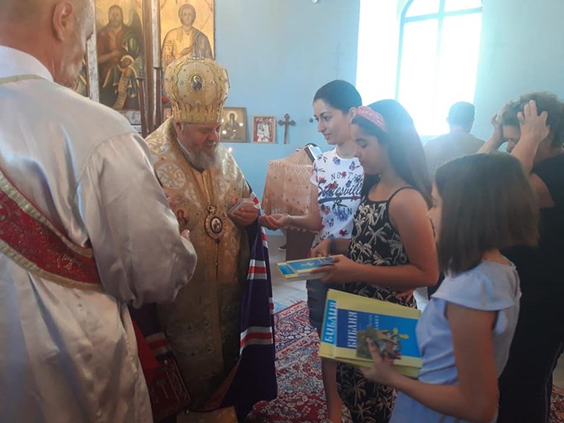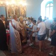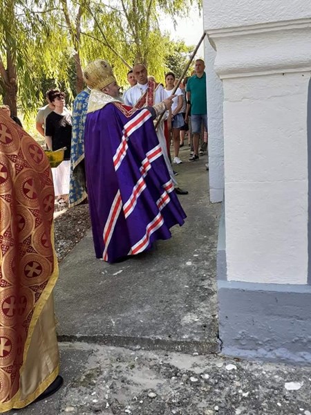 След края на архиерейската Света литургия бе изпълнено многолетствие за председателя на храма и за църковното настоятелство, за дарителите и за всички жители на Новград. В тържествена обстановка певците от църковния хор от Свищов огласиха пространството с църковните песнопения. Митрополит Григорий призова християните да се грижат за храма си, защото „каквото е благолепието на храма – Божия дом, това показва какво е благолепието на вашите души. Ако храмът е поддържан чист и спретнат, чисти и съкровени са вашите души. Ако той е мизерен, опушен и изпаднал – такива са душите на християните. Затова се радваме, че храмът в Новград е светъл, чист и обновен, което означава, че и вашите души са чисти, светли и благословени“. По време на службата Дядо Григорий помаза стените на храма - отвън и вътре, с елей, за да прогони злите сили. Великотърновският митрополит отправи молебен за здраве и благоденствие като призова християните да спазват всички противоепидемични мерки и изисквания. Свещениците осветиха и курбана, който беше разпределен в пластмасови кутии и раздаден на миряните. Всички присъстващи запалиха по свещичка и се помолиха за здраве на своите близки. Дядо Григорий раздаде библии на всички момичета и момчета, прекрачили прага на обновения храм.