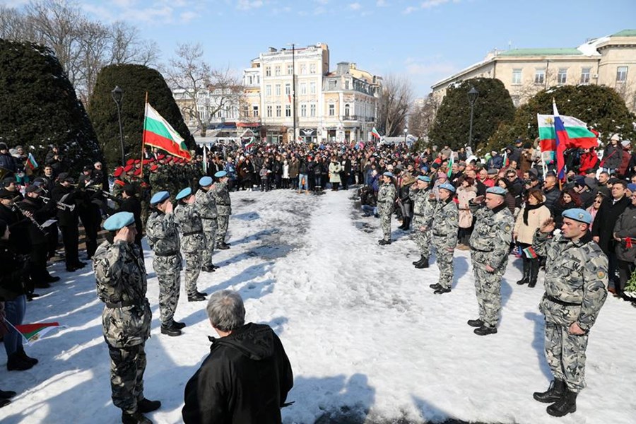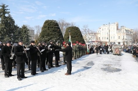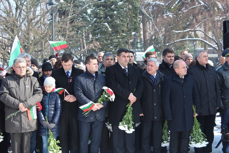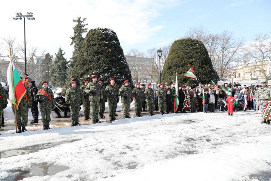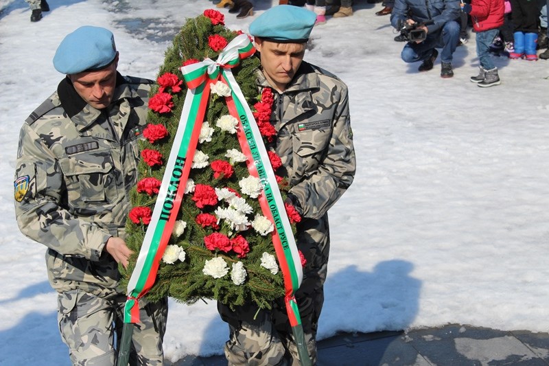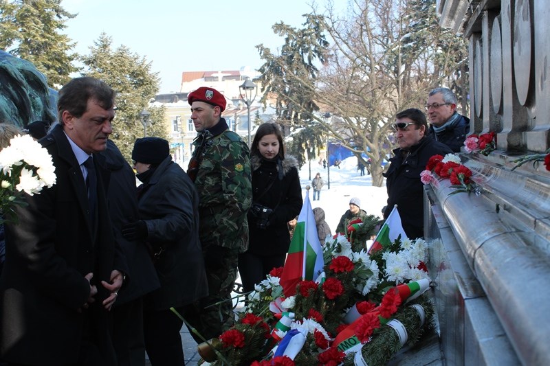Днес, пред Паметника на Свободата, в чест на 3 март – Национален празник на Република България и 140 години от Освобождението, се състоя тържествена церемония по поднасяне на венци и цветя.