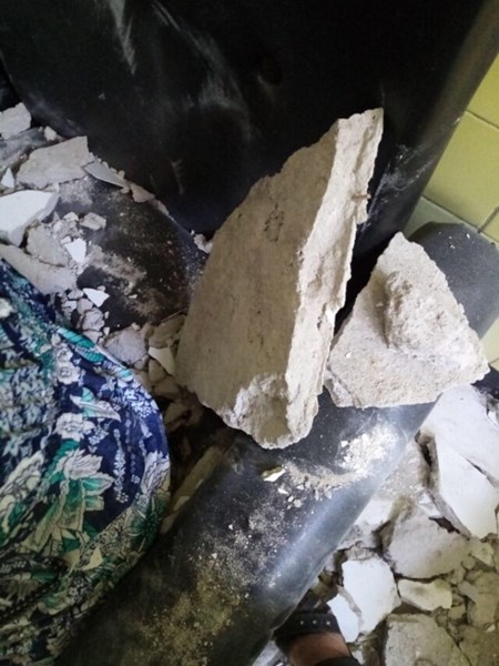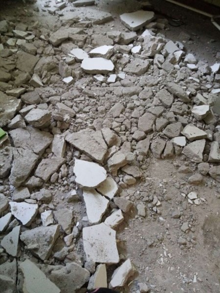 Според потърпевшите целият таван е паднал. Пострадали са две жени – едната е с черепно-мозъчна травма, а другата е с по-леки наранявания.