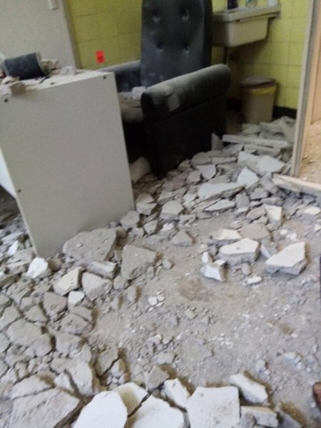 На снимките се вижда, че огромни парчета от тавана са паднали в кабинета. Според зрителите на bTV в съседното крило на болницата се извършва ремонт и може това да е довело до инцидента.