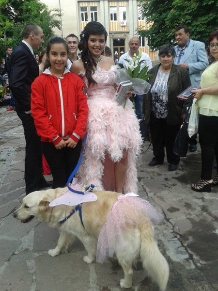 Докато останалите се опитваха да бъдат оригинални и се появяваха със скъпи коли, трактори и ТИР-ове, то Петя Светлинова пристигна с любимата си кучка. Животното, което на 3 г. и се казва Дейзи, беше облечено с розова поличка, която беше в същия цвят като балната рокля на момичето.