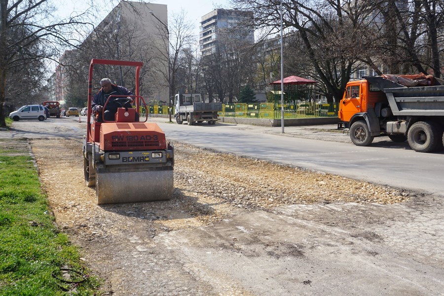 Продължават ремонтните дейности в квартал "Възраждане", където работници на ОП "Комунални дейности" запълват разбити и осеяни с дупки пътни участъци, по които русенци се движат всеки ден. След улиците "Студентска" и "Неофит Рилски" е ред на "Алеи Възраждане".