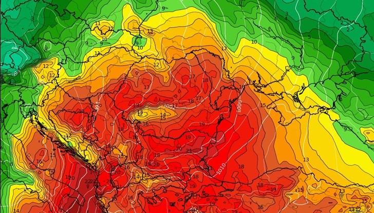 В първото десетдневие на април очакваните градуси ще са с цели 12-14 над климатичната норма за периода от 1991-2020г. - с температури между 23-26°С. Според GFS модела, над крайните Северозападни Балкани налягането ще е ниско и съответно ще имаме и условия за южен пренос.