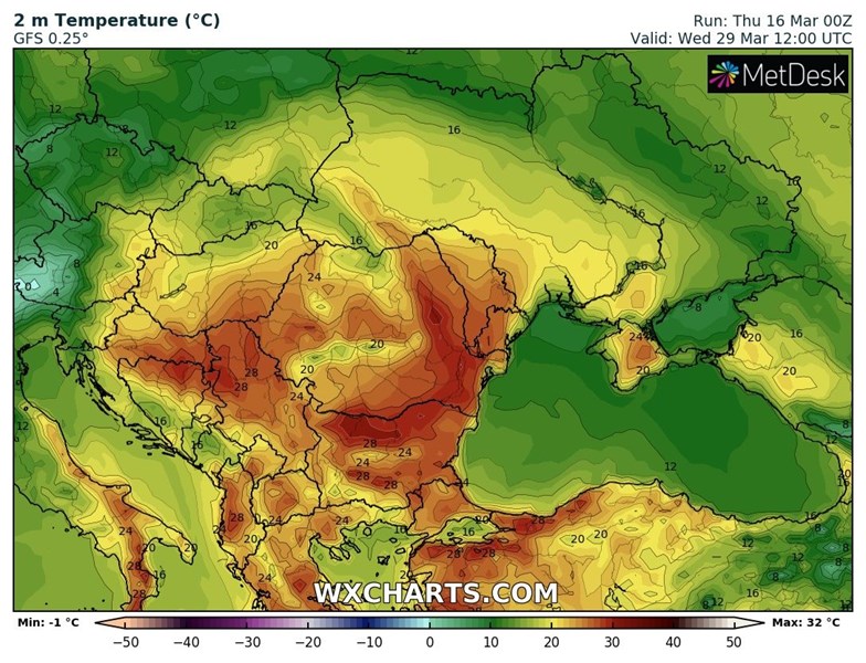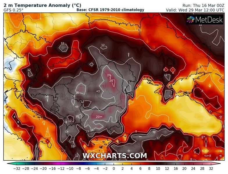 Припомняме, че Европа изпрати рекордно топъл и сух февруари, а по всичко изглежда, че и март ще е подобен. Април месец изглежда, че ще е по-хладен – с повече валежи и по-ниски температури, сочат прогнозните данни на Meteo Balkans.