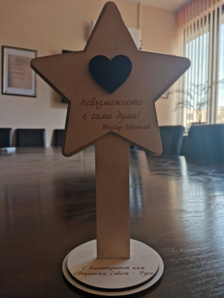 Със своите 71 часа непрекъснато плуване в езерото „Липник“ край Русе, Теодор Цветков показа, че невъзможното е само дума и всъщност всичко може да стане възможно. Точно с тези думи е гравирана и наградата към Общинския съвет.