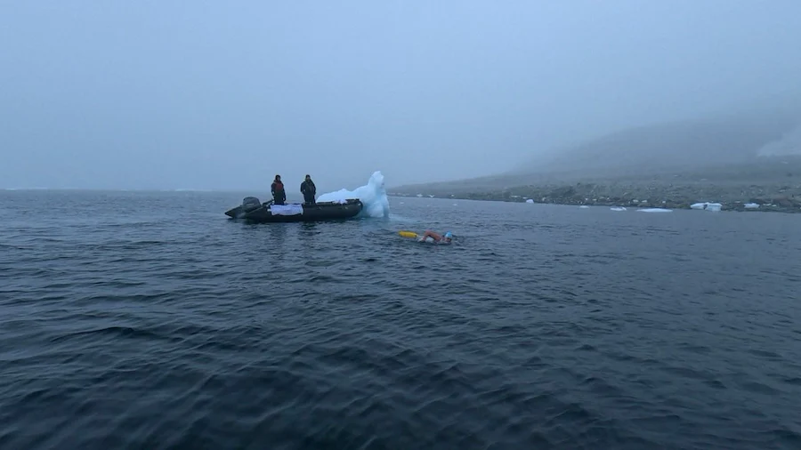 "Плувах сред ледени късове и малки айсберги. Ледът се удряше в тялото ми и оставяше драскотини по кожата. Когато тялото е премръзнало, всяко загребване става по-трудно, а всеки удар в леда се усеща болезнено", сподели Теодор Цветков в публикация в социалните мрежи.