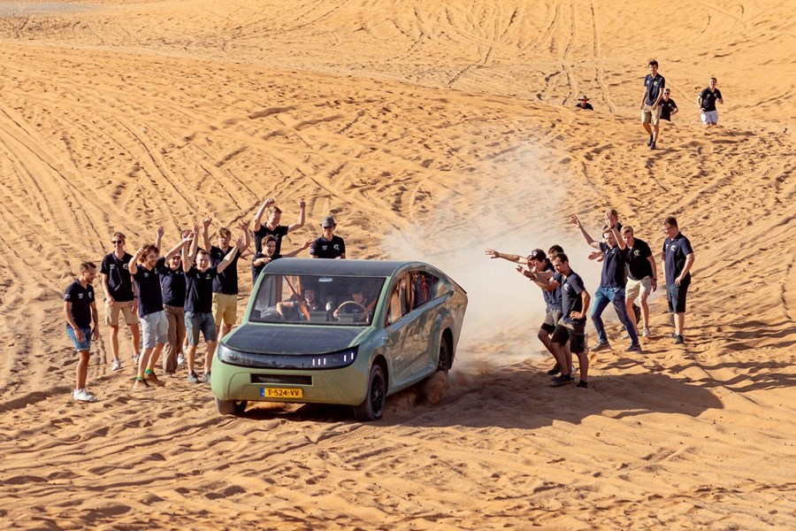 Студенти от Техническия университет в Айндховен успешно проведоха тест на кола, задвижвана от слънчеви панели.