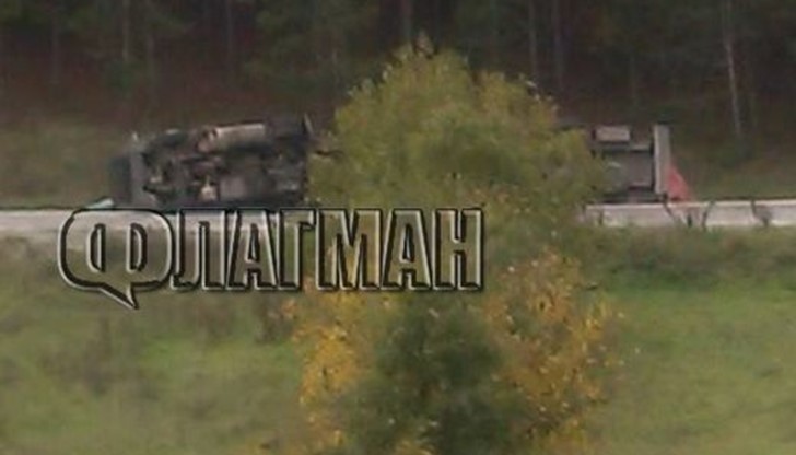 По първоначална информация става въпрос за ТИР, който се е обърнал в канавката.Водачът на тежкотоварния автомобил загубил контрол над возилото и катастрофирал самостоятелно.