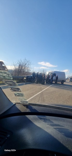 Инцидентът е станал в трилентовия участък на пътя. В момента движението не е спряно, но се осъществява в една лента под надзора на пътна полиция.