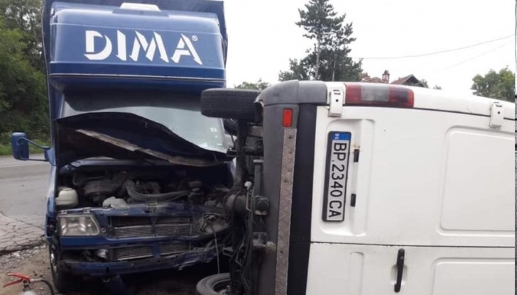 Два камиона са се ударили зверски на завой във видинското село Скомля, след което единият се е обърнал. На този етап не са ясни причините за поредната катастрофа на натоварения път. Две пожарни, линейки и патрул на полицията са пристигнали на терен в селото.