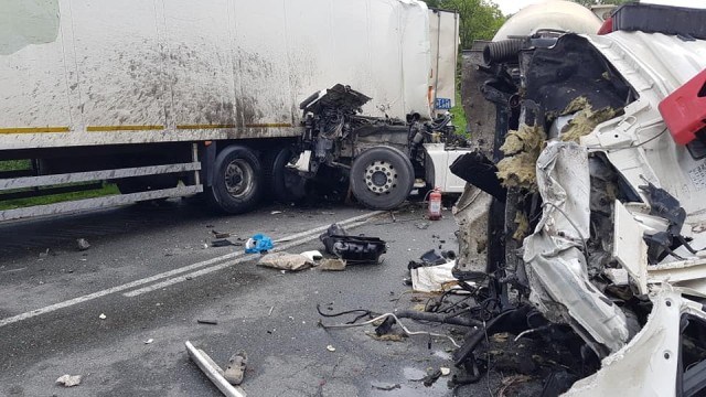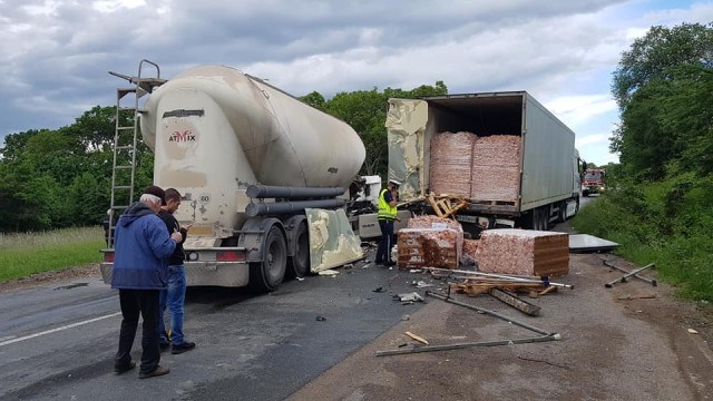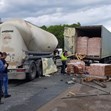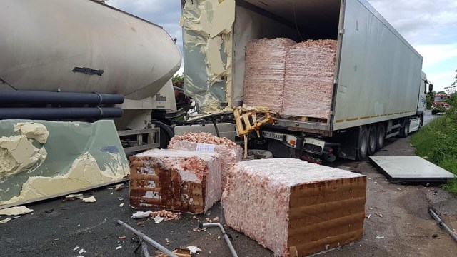 Цистерна се блъсна в камион, превозващ месни продукти.