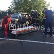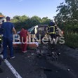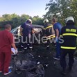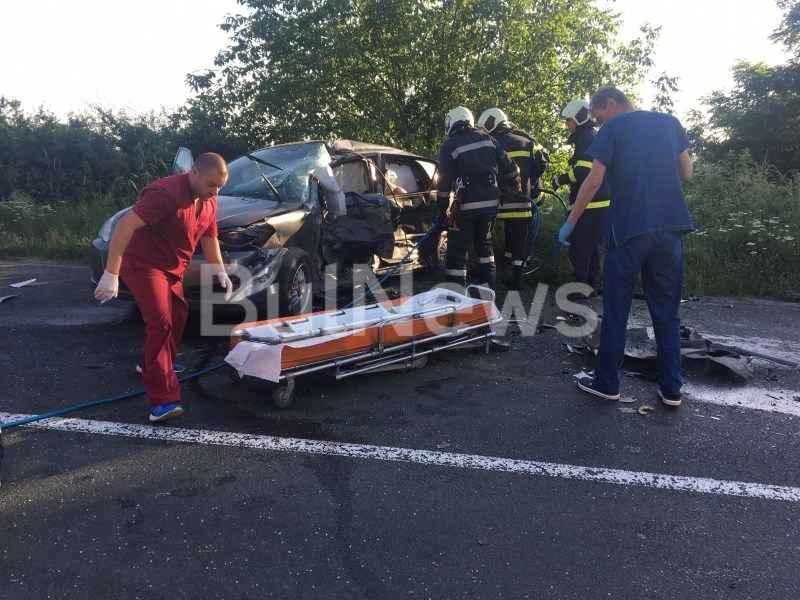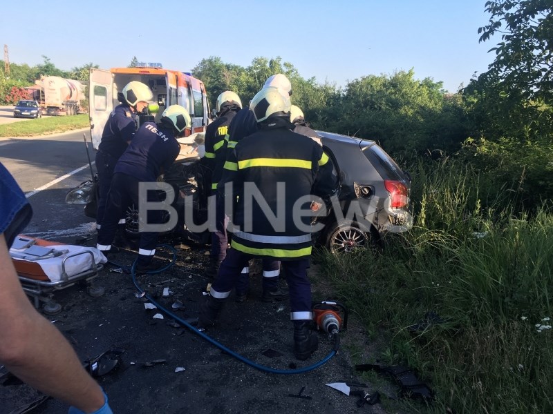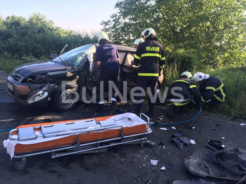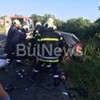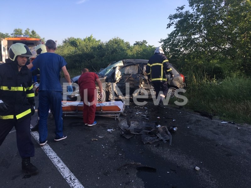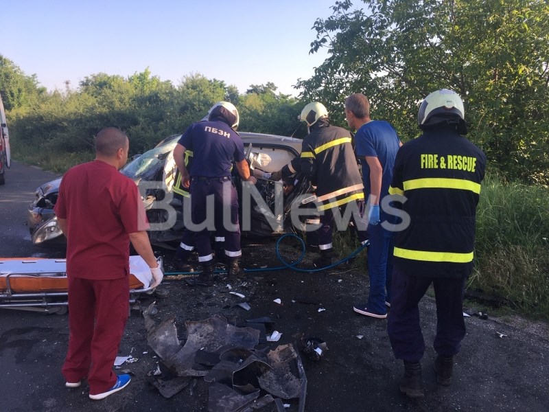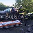 По първоначална информация шофьорът на колата е загинал, а в момента пожарникари провеждат спасителна операция да извадят втори мъж, който е сред смазаните ламарини. В радиус от 50 метра наоколо има разпилени части от двата автомобила.