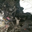Заради удара се късат обезопасителните колани на платформата. На нея са закрепени лека кола и бял микробус, които също падат на платното.