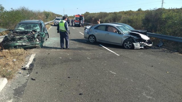 Една от колите се движи в посока Бургас, загубва управление и се удря челно във втора, пътуваща за Приморско. От рикошета и двата автомобила се удрят в трети. Хората и в двете коли - от Враца и Монтана, са пътували за почивка в Приморско.