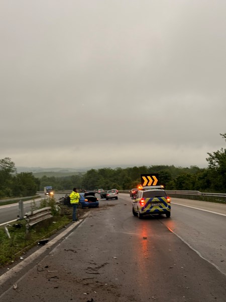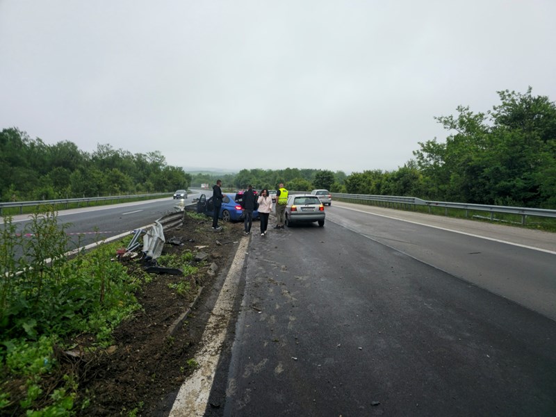 По първоначални данни, син лек автомобил BMW е излязъл от пътното платно и се е ударил в мантинелата в района на отбивката за Осиковица. Инцидентът е довел до частично затруднение на движението по магистралата.