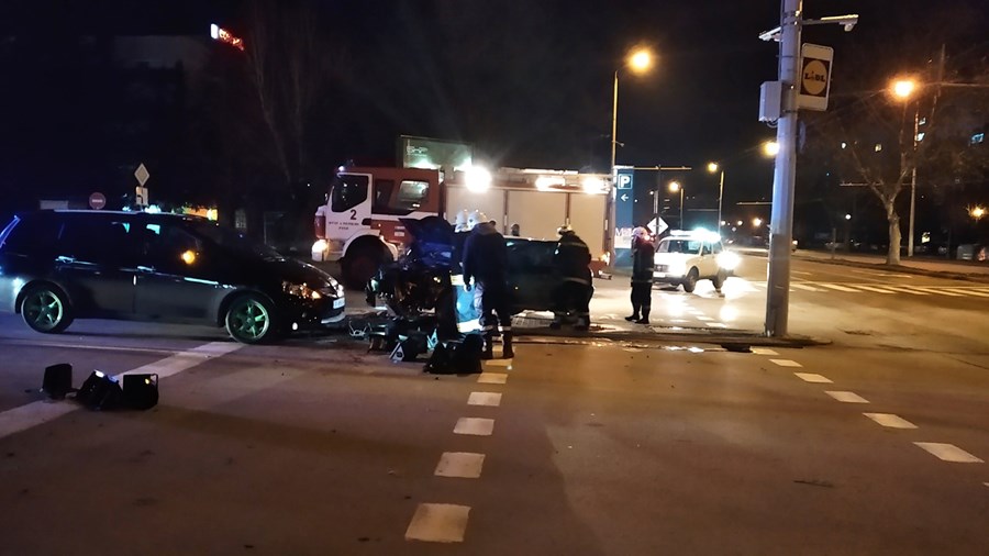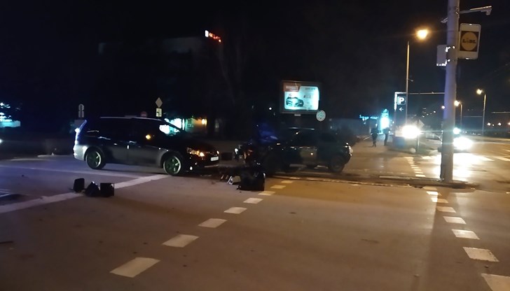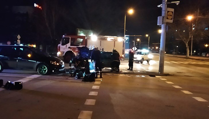 По първоначална информация са се ударили два леки автомобила. Съборен е един от светофарите. На мястото на произшествието са пристигнали полиция и пожарна. Засега няма данни за пострадали хора.