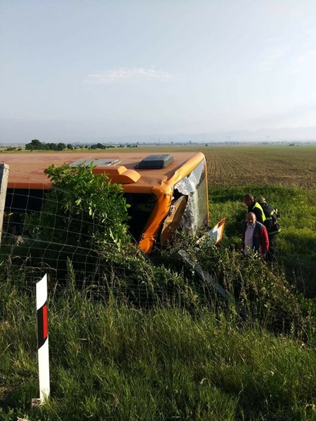 Автобусът е пътувал от Нови хан към столицата. По първоначална информация тежкотоварният камион е ударил автобуса отзад и го е извхърлил от пътя.
