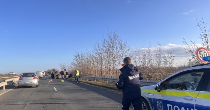 По информация на екипа на националната телевизия, при инцидента няма пострадали пътници, но превозното средство е със значителни материални щети. Дясната лента е напълно блокирана, а движението се осъществява само в изпреварващата лента.