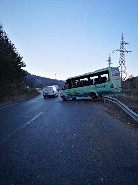 Сблъсъкът е бил между лек автомобил и пътнически автобус. Ударът е бил до толкова силен, че автобусът се е завъртял и се е качил на мантинелата, на мястото веднага са пристигнали патрули на пътна полиция, пише ТопПреса.