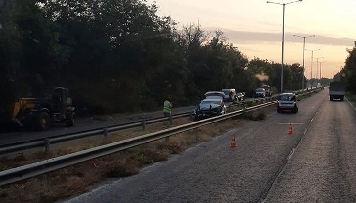 Лек автомобил „Мерцедес“ с немска регистрация, управляван от 20-годишен младеж, се е врязал в задната част на челен товарач. При удара колата е отхвръкнала към мантинелата и е влязла в разделителната ивица, а товарачът се е разпилял, като е изхвръкнал карданът му. Той е превозвал отпадъчни маслени продукти, които са се разтекли по пътното платно, предаде Русе Медиа.