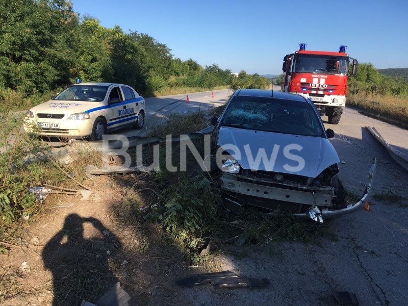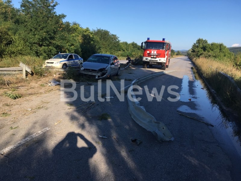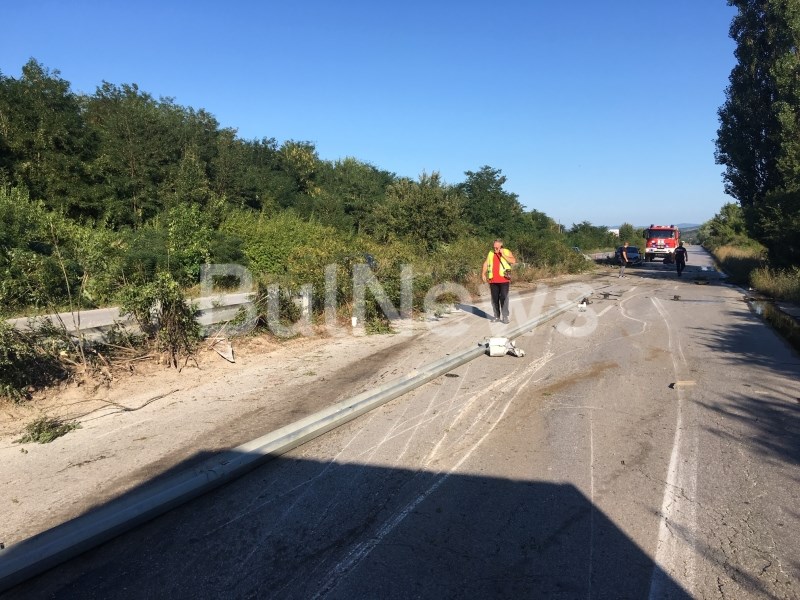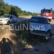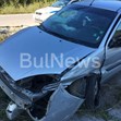 На мястото на катастрофата работят два екипа на Пътна полиция и един екип огнеборци.