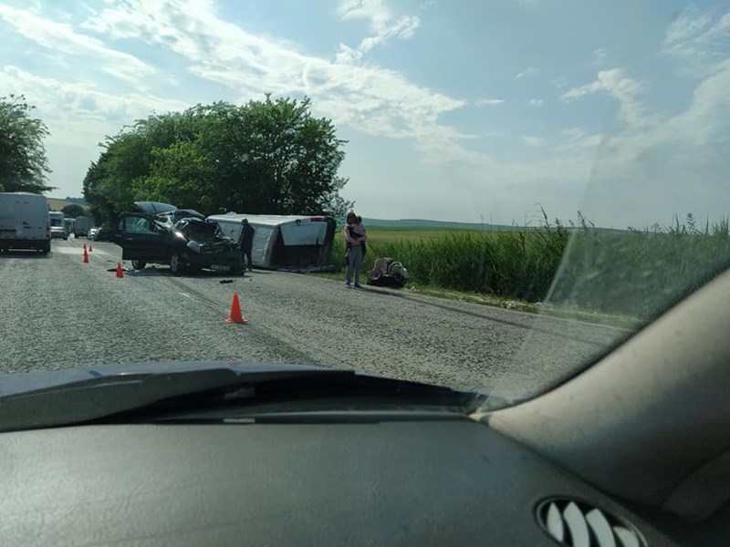 Инцидентът е станал около 17 часа днес. Румънският микробус е пресякъл пътя на лекия автомобил "Фолксваген" с русенска регистрация. Водачът на колата успял рязко да свие в дясно и да избегне удара. Бусът, обаче се завъртял и се блъснал в движещ се в насрещното платно варненски лек автомобил. В него пътувало семейство с две деца, съобщи Радио Велико Търново.