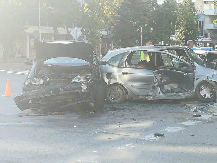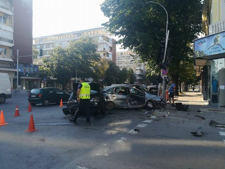 След сблъска една от колите се отклонила много опасно към тротоара и близкия магазин, като единствено стълбът на светофарната уредба е спасил от по-голям кошмар.