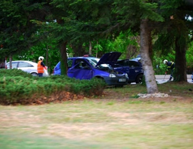 Не е ясна и причината за инцидента, в който два автомобила се озоваха в острова между двете платна, с единият от които смачкана до неузнаваемост.