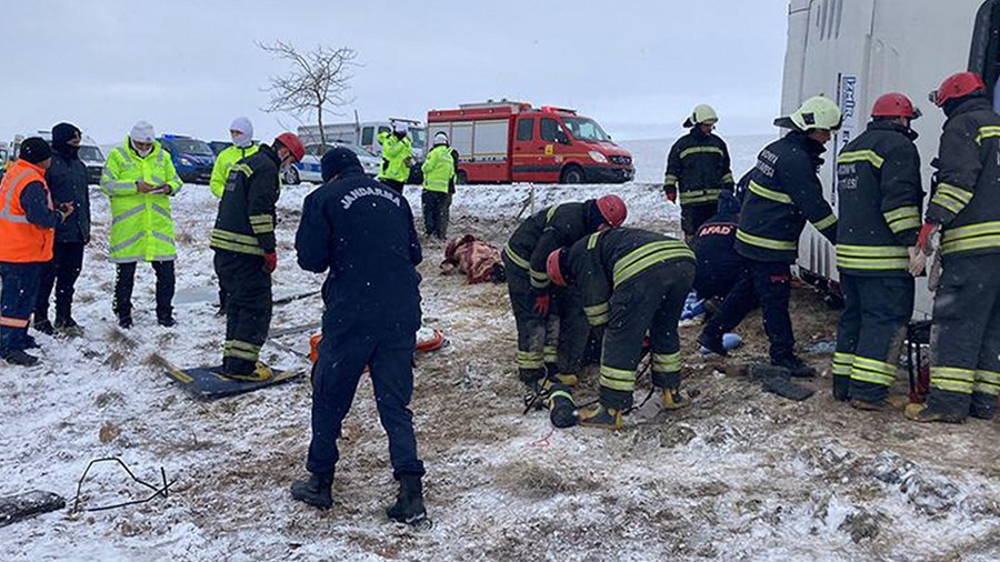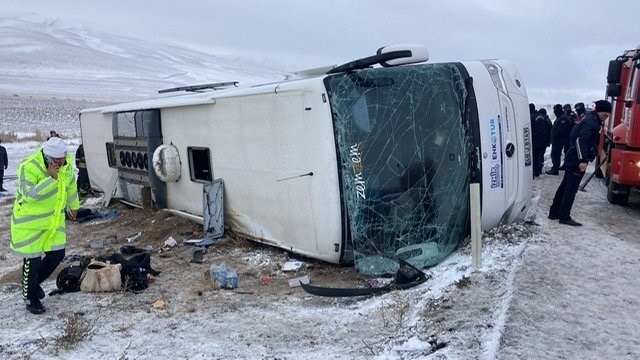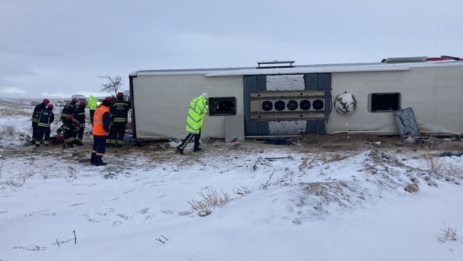 Автобусът се е преобърнал на магистралата между Коня и Аксарай заради поледица. Той е пътувал от Измир към района на Кападокия.