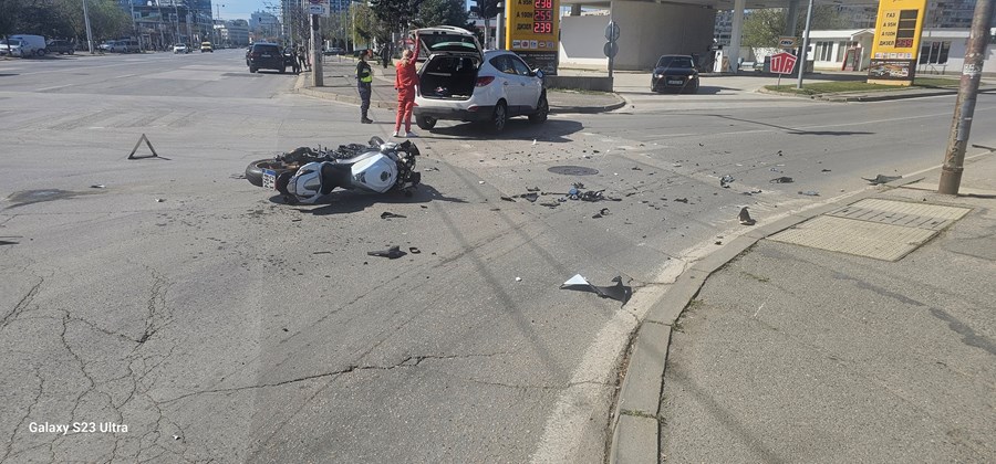 Катастрофата е станала на кръстовище на булевард "Цветан Лазаров", което се регулира със светофарна уредба. Според информацията, пострадалият мотоциклетист е транспортиран в болница, но засега няма данни за състоянието му.