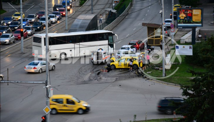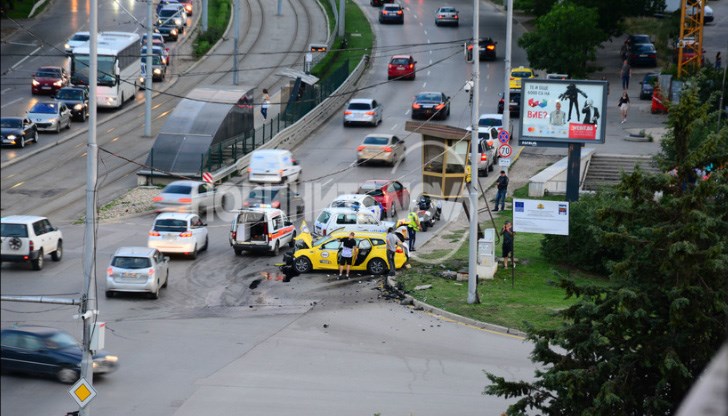 В него са участвали такси и още една кола, предава NOVA. Таксито е карало направо, другата кола е правила ляв завой. Очевидци твърдят, че таксиметровият шофьор е минал на червено, ударил е черната кола в страничните врати и я е изхвърлил на 200 метра в съседна градинка.