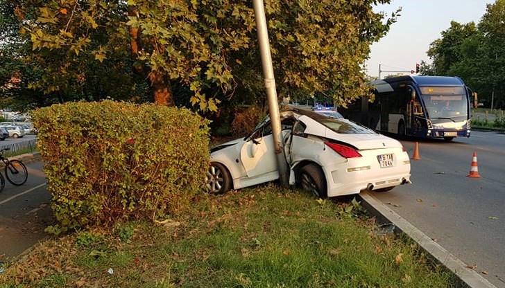 Бял Нисан 350Z е буквално смлян в крайпътен стълб на метри от УМБАЛ-Бургас, предава Флагман от мястото на инцидента, който е станал около 19:15 ч на бул. "Стефан Стамболов".