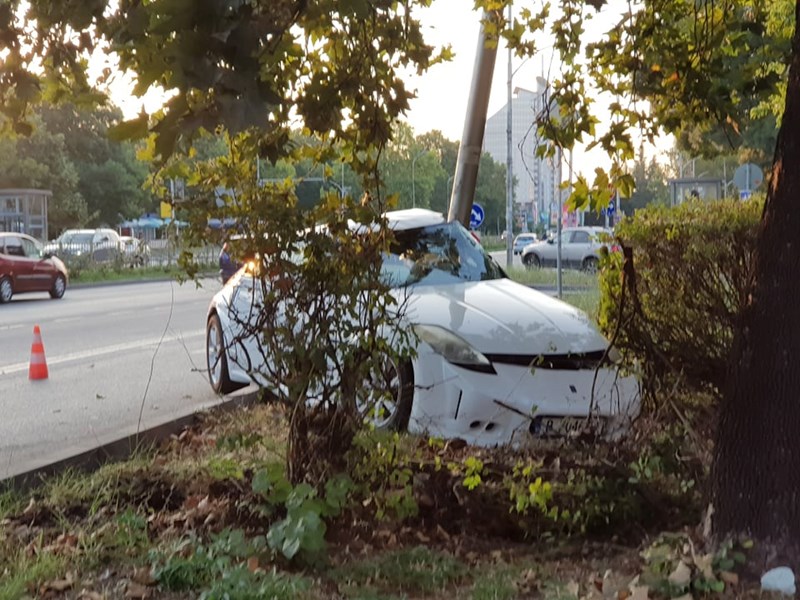 Тежка самостоятелна катастрофа със спортна кола в Бургас като по чудо не взе жертви.