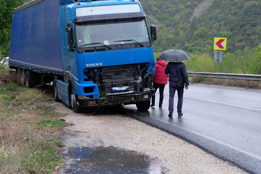 67-годишен мъж, водач на лек автомобил "Опел" е с травма в МБАЛ - Благоевград след челен удар на ТИР с "Волво" на Е-79 в Кресненското дефиле.