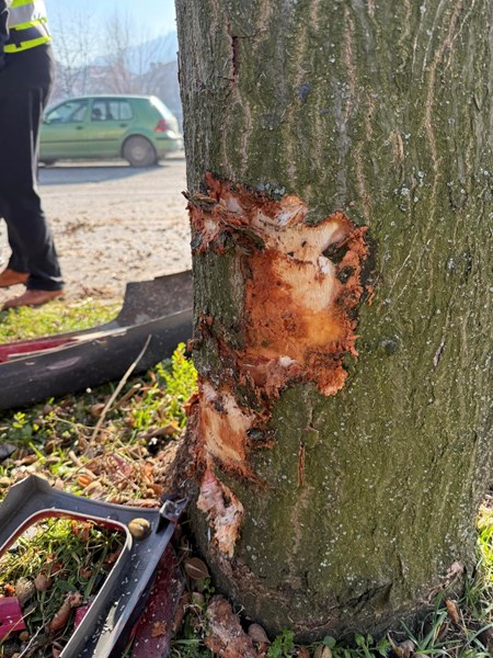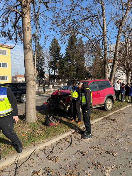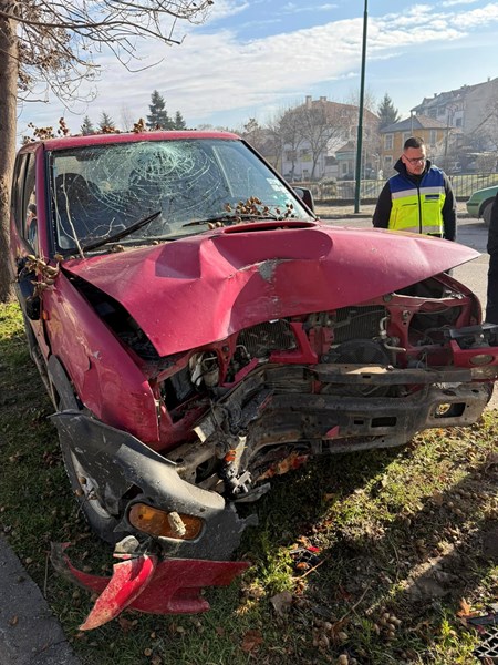 За да избегне сблъсъка, водачът на червения автомобил предприел маневра наляво, която завършила с удар в крайпътно дърво. При инцидента шофьорът, който не използвал обезопасителен колан, получил травми след удар с главата в предното стъкло.