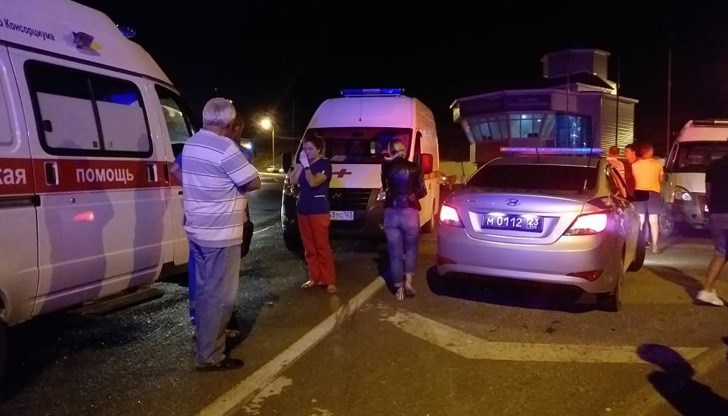 , който принадлежи на санаториум, се е сблъскал челно с лек автомобил на шосе край черноморския пристанищен град Новоросийск. Двете превозни средства са излезли от пътя и паднали в 30-метрово дере.