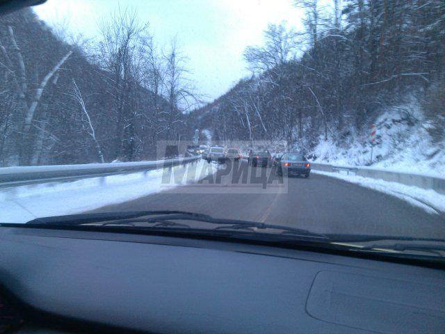Образували са се колони от автомобили и от двете страни на пътното платно. Колоната в посока Пловдив е почти 500 метра.